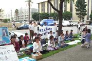 【明慧网2001年11月22日】得悉有三十多名来自十二个国家的西人法轮功学员20日下午(北京时间)在天安门广场为被中国政府镇压的法轮功请愿而遭到拘留,洛杉矶大法弟子于当地时间11月20日下午两点在中国驻洛杉矶总领馆前紧急召开新闻发布会,向中西方媒体披露这一事件,同时宣读了一位来自当地的一名美籍和以色列籍的大学一年级学生的声明,并要求中国立即释放被拘留的西方法轮功学员。