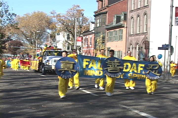 接下来就是怎么装扮花车。原本想请外州会干木匠活的学员帮忙,谁知他们那天都腾不出空来。怎么办?突然悟到我们不能太依赖别人了,不能因为一两个人不能参加就什么也干不成了,要做到师父经文里讲的那样“在讲清真相中,不要等,不要靠,不要指望外在因素的变化。”(《致北欧法会全体学员》)。虽然我一时怎么也想象不出如何把写有“真善忍”和“法轮大法”的木头板子搭上车,但大家的心一坚定下来之后,无意中得知我们本地就有一个学员懂木匠活。结果可想而知,在不长时间内,漂亮的法轮大法花车就装扮起来了。学员们在花车上不停地表演着五套功法,在上百个游行团体里分外醒目,效果非常好。观众纷纷接过真相材料,向学员挥手致意。