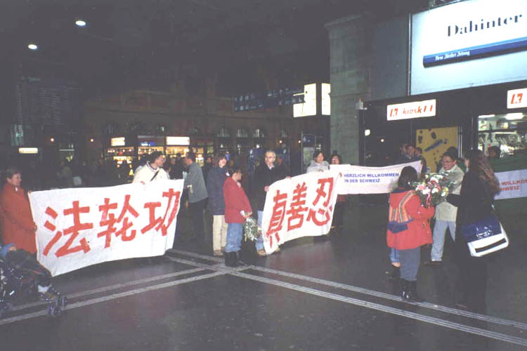 在车站侧边的餐厅里,四位学员讲述了他们在北京20小时的难忘的护法经历。他们谈到了在天安门广场集体发正念时那种无法用语言表达出来的强烈感受;他们谈到了在广场和关押地点所受到的粗暴对待。一位学员在单独受审时,曾被三名警察殴打,他说当时他注意到打人警察眼中的凶狠邪恶的目光,但当时只听“咚咚”响,却并不感觉怎么疼痛,他含着眼泪说:“是师父在替我们承受!”他们也谈到了学员们把“受审”当成洪法讲清真相的好机会的动人情景,一位看管他们的警察曾悄悄对他们说:“我知道法轮大法好,只是现在还不敢说。”看到人们的觉醒,特别是警察的觉醒,大法弟子们感到欣慰!他们表示要广泛地向瑞士政府、议会、媒体和人民介绍他们这次亲身的经历和体会,呼吁一切善良的人民行动起来,紧急救援承受着巨大无名苦难的中国大陆的法轮功弟子。