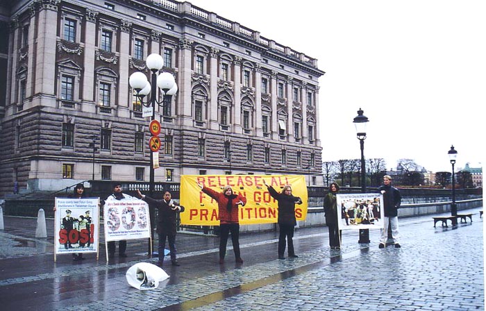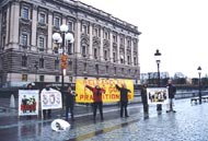 【明慧网2001年11月27日】11月23日下午刚刚从中国返回的瑞典西人大法学员们在斯得哥尔摩明特广场再次召开记者招待会。欧盟议员西西丽雅不顾天气寒冷赶到现场向安全返回的瑞典学员们问寒问暖,亲切交谈。电视三台在当晚新闻节目里进行了长时间转播。