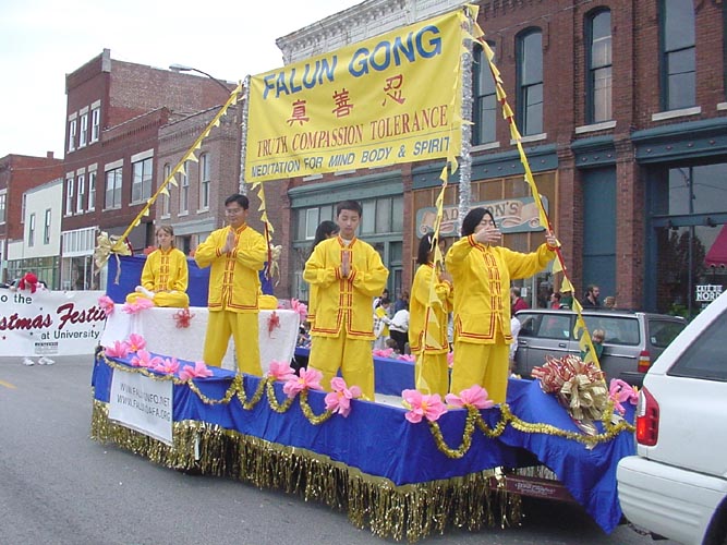上周六,我们参加了在密苏里,斯比灵(Spring Field, Missouri)的圣诞节游行。这几乎是这个城市每年最大的活动,在这个有20几万人口的城市,观看游行的就有5、6万之多,当地几家电视台也在现场采访,游行路线上有四个主席台,每次我们经过时,主持人都兴奋地向观众们介绍法轮大法,听得我们都心潮澎湃。6个人发资料都不够,好多次有的观众从远处跑来索要资料,有一位美国妇女看着我们的花车双手合十,一拜再拜。好多人都在问在哪里可以学到,观众中经常爆发出热烈的掌声。也遇到了几个中国人,我们就给中文小册子,向他们讲真相。