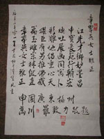 还有一位老华侨,在马路上看到画展的广告后,坐出租车赶到画展参加开幕式,并特地作诗一首赞誉我的艺术成就和不畏强权坚持真理的人格。