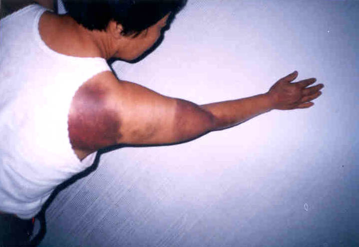 【明慧网2001年11月5日】2001年9月17日晚,8点多钟,吉林省辽源市站前派出所所长苏岩领2个警察到大法弟子杨建明(化名)家中,要抓人。当时,杨建明已经在床上休息了。其中一个警察讲:“去也得去,不去也得去,抬也得抬去。”态度非常蛮横。他们见杨建明没有走的意思,又打电话叫来了三四个人,强行将杨建明逮走。到派出所后非法审讯,杨建明不说话,他们就打她。他们说的事,要求杨建明必须承认,并宣称不承认就是不尊敬他们。64岁的老人身体有些发抖,一抖就打她。又问老人去谁家串过门没有,不说还是打。接下来让老人骂师父、大法,不听他们的还打。邪恶的警察根本就没有人性,非常凶狠,用雨伞把儿打,持续约4个小时左右。这位坚信宇宙真理的老人被打得皮肤黑紫。他们发泄完私愤,因为没有任何证据,不得不将老人放回。