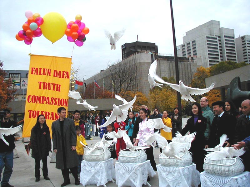 | 真善忍小风车 | 小弟子炼功 | 放飞和平鸽 |