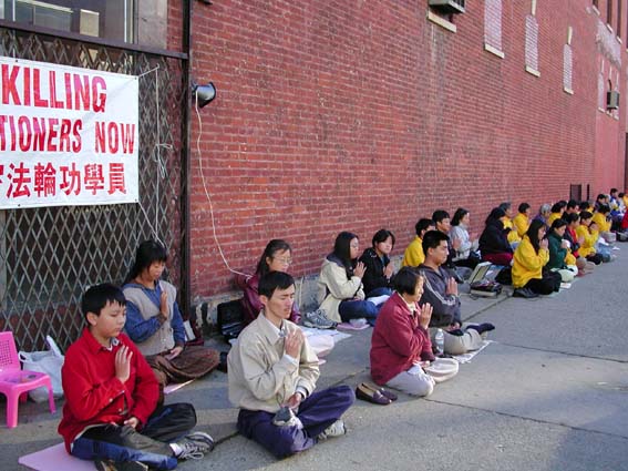 十一月的芝加哥已经是很冷了,但寒风中的弟子们凛然不动,打坐、炼功、发正念。因为我们知道我们所经历的是一场正邪的较量,而邪永远不会压倒正的,这是宇宙的理!