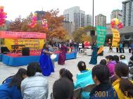 百幅左右的“正法之路”展板在广场上向世人展示着“法轮大法”的洪传及邪恶的疯狂镇压,同时也展示了法轮大法弟子揭露邪恶之后,广大世人,许许多多国家的政府和议会对大法和大法弟子的支持。