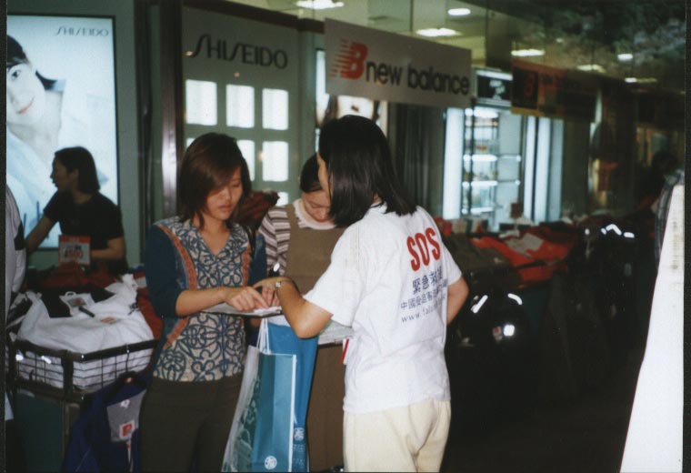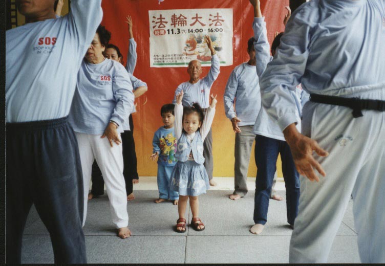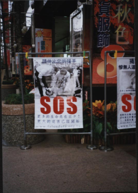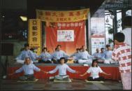 下午二时,三十多位学员穿着蓝色SOS上衣,齐聚在友爱百货公司一楼,这是宜兰县内唯一的大型百货公司,位于人潮熙来攘往之处,是市中心理想的洪法地点。藉由学员事先接洽,主办单位搭起一座适合表演功法的平台。由于以前曾在此处教功洪法,学员们驾轻就熟地布置现场,悬挂横幅与SOS真相图片。随着悠扬的炼功音乐响起,学员们专注地演炼五套功法,优美柔和的动作吸引了大家的目光。