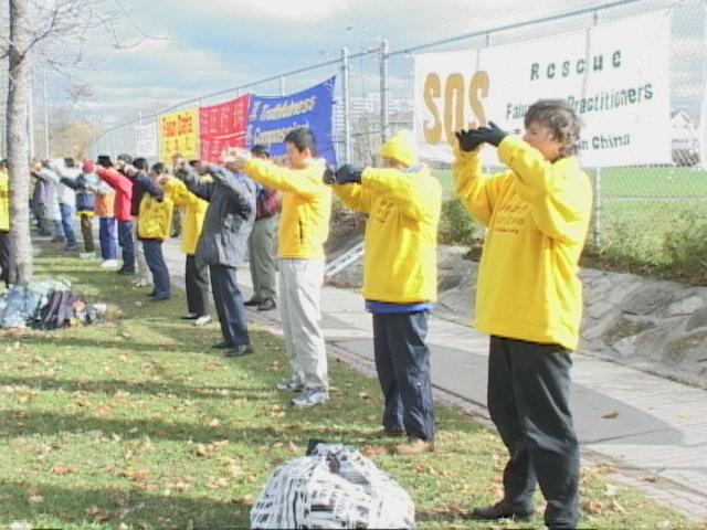 为抗议这种惨无人道的暴行,渥太华三十多名学员,于11月5日中午,赶往中国驻加使馆,呼吁停止迫害长春以及所有国内的法轮功学员。