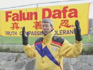 过往的车辆,不断向我们鸣笛致意,表达着善意的支持。炼功期间,有几位中国人从使馆走出,一名学员立刻奔跑着过了马路,将真相资料递给他们,他们毫不犹豫地接了过来。国内外弟子的付出在改变着环境和人心。
