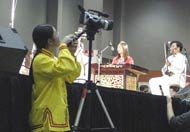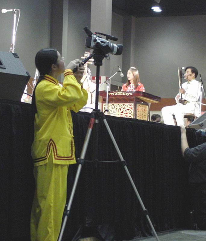 | 刻有英文“法轮大法好!真善忍”及炼功联系人电话的“签证图章”盖到了一本本“护照”上,学员还亲笔写上中文“法轮大法好!”,深受欢迎。 | 向来国际节参加演出的大陆某文艺团展示法轮大法学员遍天下 |
