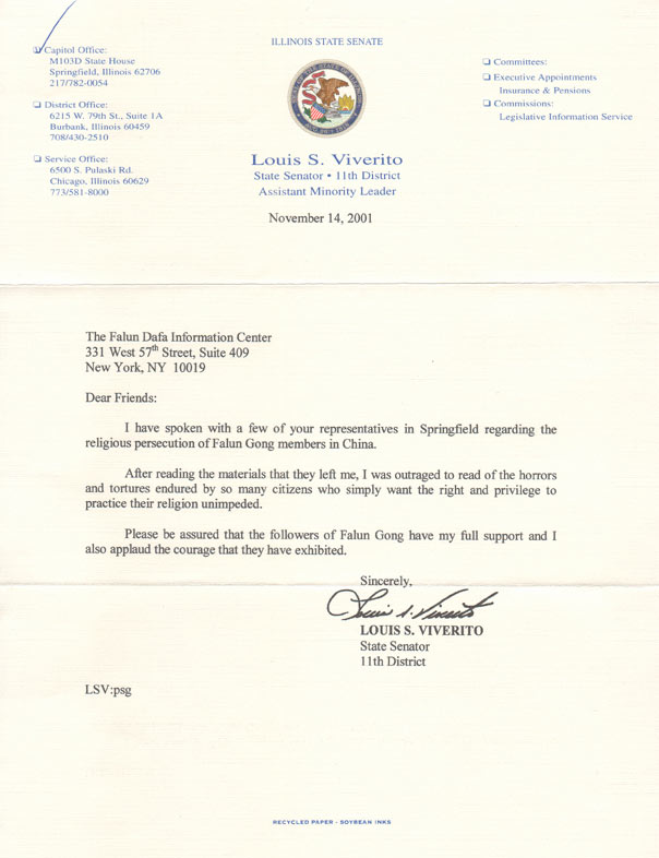 我与你们在斯普林菲尔德的代表就法轮功学员在中国受到宗教迫害一事进行了交谈。