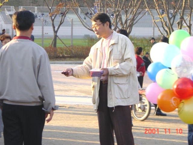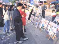 继10月3日在汉城针对数万来自中国的在韩朝鲜族讲真相的活动后,韩国学员又开展了一次颇有声势的全国性正法活动。此正法活动有几个特点:摆脱至今集中人力只在重点城市开展正法活动的局面,以汉城、大邱、釜山、光州、大田等地学员为中心向周围小城市与农村洪法,大大地开拓了正法活动的范围。广大学员们走出来参加正法活动的积极性空前高涨,全国共组成13个小分队,共拷贝了10万张大法传单,比较充分地准备了大法图片,横幅,车辆等等。