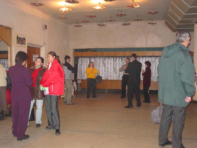 开始我们面临着很多困难,当内心的问题暴露出来,并清除了外来的干扰后,形式就发生了改变。在这三天的时间里,圣彼得堡来的学员对我们帮助很大。图片展在城里最好的展厅之一‘科学家大厦’里举办。在这座大楼里有一个网吧,很多中国大学生经常光顾这里,这是绝好的清除他们头脑里由于邪恶的谎言作祟而形成的对大法不正的观念的机会。一个中国人接连两次进来参观画展,第二天与学员谈了很长时间,然后想学炼功。学员送给他一本中文的《转法轮》。