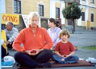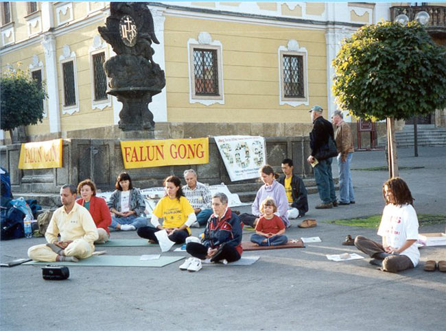 正念是有威力的。我们在市政厅结束了这一天的洪法,在那里我们播放了李老师的一盘录像带的部份内容。然后我们为当地人回答了有关法轮功的问题。