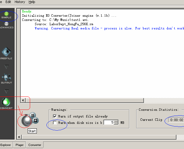 选择完后就点左下角的Converter(转换器)开始转换,当然你也可以点左下角中间的Player(播放器)观看录象。