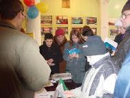 一早,一位中学女教师前来参观了图片展,仔细看了整个展览后,她找到在展厅的法轮功学员问是否可以带她班里的孩子们前来参观。她告诉学员她是带着希望来的。原来,这位教师一直在寻找帮助孩子们发展德育的方法。她说,当今社会上有很多的宣传对孩子们的成长非常不利,《正法之路》图片展览让她看到了希望,展览的神圣和祥和的气氛让她看到了孩子们的希望。