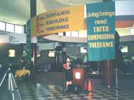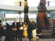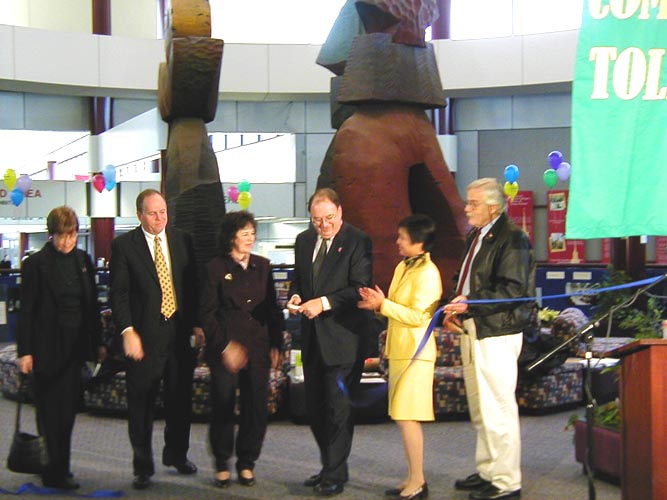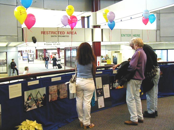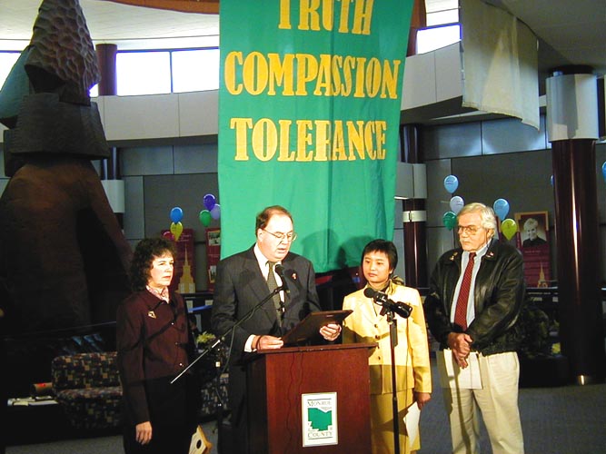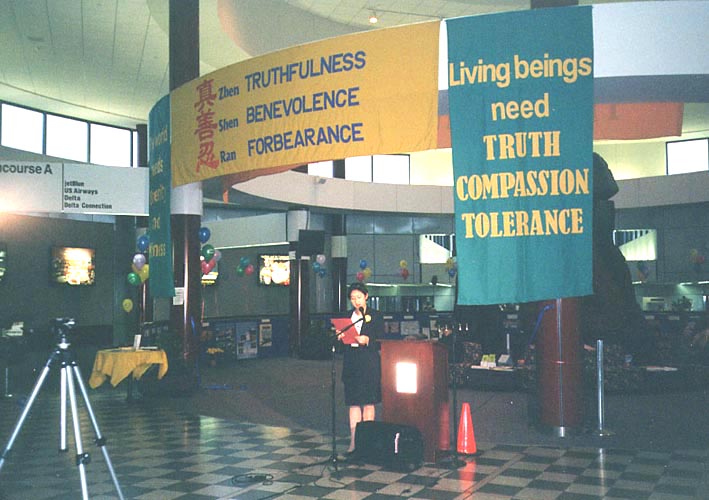在开幕式致词中,多尔先生说,“蒙罗郡很高兴能够在机场举办这个特殊而感人的展览。早在1776年,我们国家就已经把支持宗教信仰自由作为奠定国家的基石,而这个展览将让人们看到在2001年的今天,竟有一个独裁政府连给人民最基本的公民权力都做不到。”随后,他向当地学员代表和法轮功之友代表颁发了官方正式褒奖,命名2001年12月为“真善忍月”,鼓励社区人民认同这永恒的真理,表扬法轮功学员对社区的贡献。
