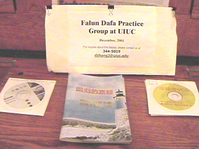 【明慧网2001年12月20日】日前,美国伊利诺伊大学大法学员设计制作的“了解法轮功”图片展在伊利诺伊大学最大的图书馆(Main Library)展出,将持续两月。