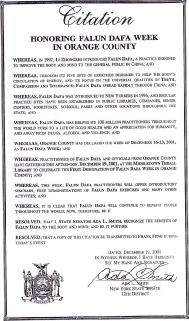 鉴于,桔县的法轮大法学员和政府官员于2001年12月19日下午在中城思洛尔图书馆(Middletown Thrall Library)庆祝首届桔县“法轮大法周”;并且,