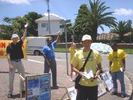 多数华人都接受了传单和报纸,一些人还热心询问一些问题,以期更多地了解法轮功,我们均向他们讲清了真相。一些在那里工作的人告诉我们,他们希望能再次见到我们。