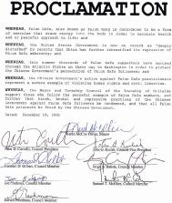 希尔赛德市市长和市议会曾经在去年发布公告,宣布2000年12月4-8日为该市的“法轮大法周”。
