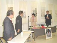 最后市长助理说,我的画是发自内心画的,集中了精力,不为名利。所以我的画有一种内在祥和的美,是用心在画,充满了善良,特别从画中人物的眼睛里能看到一股慈善的力量,感到特别亲近。他曾经在法国看过一位很有名的画家的展览,而他是为了名利,所以画的味道也变了,看上去很华丽,但是缺乏内涵。他还对一位日本学员说;“每次在市政府见到你们,我们都用政府官僚程序接待你们,心里也很过意不去,今天在这里我们可以尽情畅谈,没有拘束。”更有趣的是市长助理对一位科长说∶“今天你看了这画,你以后就不能再做坏事了。”