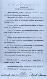 佛罗里达州包和县议会宣布“法轮大法日”