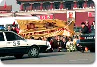 警察总是巡逻在天安门广场周围,随时准备盘问那些想抓拍法轮功学员和平请愿镜头的摄相师和摄影记者。