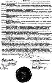 鉴于,由折磨引起的死亡数目已达312,数以万计人在劳改营,监狱,和精神病院被折磨,还有数十万人被强迫送入洗脑班;并且