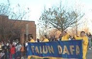 已经了解了真相的人们对我们的出现鼓掌欢呼,有的竖起大拇指,有的高声喊到:“坚持下去!”也有人向身旁还不了解我们的人介绍法轮大法,讲修炼者在中国受到迫害。最让人感动的是当孩子们仰著稚嫩的小脸,跳着追问父母那上面写的是什么时,父母们温和、认真地读到:“Truthfulness”、“Compassion”、“Forbearance”。(“真”、“善”、“忍”)三个字从人群中不时地发出来。我的眼睛湿了,为孩子们高兴,为这些善良的人们有缘知道、认识大法而高兴,为他们生命的永远而高兴。