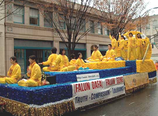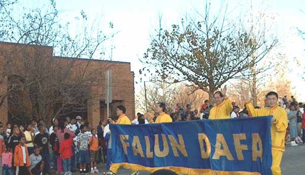 High Point, Winston-Salem, ChapelHill, Durham, Greensboro五个城市中,有两个城市是我们第一次参加这样的游行,那里的人们终于有缘知道了大法。人们好奇地注视著我们,友好地送来节日的问候。对功法演示报以热烈的掌声,并争相索取资料。有些人用有限的中文说道:“谢谢!”