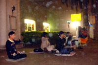 休士顿学员在领馆门前打坐,雪花般的法轮漫天飞舞。