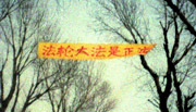 晚上8点,我们四个冒着严寒,在无人走过的雪地上步行20公里,来到久违的家乡,把一幅幅写着“法轮大法是正法”、“真善忍是宇宙大法”等的条幅挂在了四通八达的公路上,为了不让邪魔轻易破坏,一大法弟子还爬上一棵两人合抱粗细的大柳树上把一个4米长的条幅挂在了树尖上。