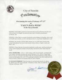 【明慧网2001年2月23日】 加州海滨市宣布2001年2月19日至25日法轮大法周