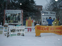 大风雪中华盛顿大法弟子在使馆前请愿