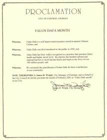 【明慧网2001年2月24日】 佐治亚州东方人市宣布2001年2月为“法轮大法月”