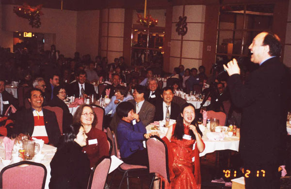 整个晚会被一种祥和喜庆的气氛所笼罩,每一个到会者都沉浸在轻松自然的氛围中,几乎是所有的宾客都在晚宴结束之后,才恋恋不舍的离席,并由衷的祝贺晚宴的空前成功。