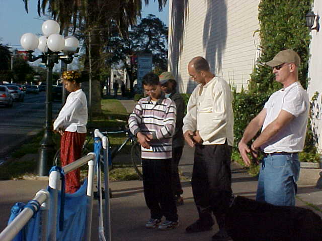 【明慧网2001年2月7日】 二月四日星期天下午,休士顿法轮功学员前往中领馆前洪法炼功,散发洪法资料。居住在中领馆附近的一些居民知道学员们常去中国总领事馆前洪法炼功,呼吁中国政府少数领导人停止镇压法轮功,给予在中国的法轮功学员炼功的权利,归还享有中国公民应有的权利。常路过中领馆馆前的一些居民从首先关注报道的法轮功被的事例,逐步了解和同情法轮功;但今天下午有两位居住在附近的美国中年男士开始学炼法轮功五套动作,中西语法轮功学员热情地指导他们。他们与学员们一道在领事馆馆前炼功,他们很高兴有这样的好机会;另一居民则主动要求签名支持法轮功,只要遇见学员,每次不错过签名机会。
