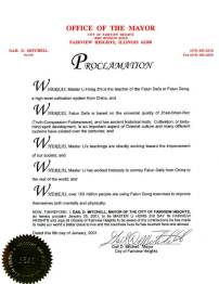 伊利诺伊州费尔优高地市宣布“李洪志大师日”