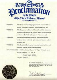 【明慧网2001年2月8日】 伊利诺伊州厄巴那(Urbana)市宣布二零零一年一月二十一日至一月二十七日为“法轮大法周”