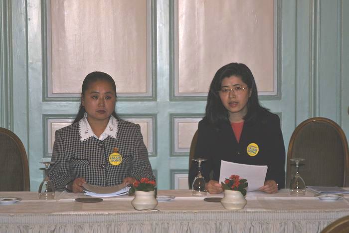 到会的有日内瓦本地的几家报纸,瑞士电视台、日本、德国等十几家媒体。 新闻发布会一开始,法轮功发言人张而平宣读了媒体声明,简单介绍了法轮功在中国最新受迫害的情况。指出对法轮功的迫害已延伸到其家人,其他传统的宗教团体及社会其它阶层。