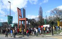 今天上午的天气很好。三月的日内瓦仍是春寒料峭,但灿烂的阳光给大家带来了暖意。与去年的炼功请愿活动相比,今年请愿的规模更加壮观。尤其引人注目的是,西人学员比去年有明显的增加。