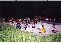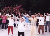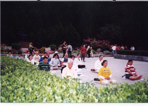 在整个活动进行前,我们先行向阳明山公园管理局口头报备,而为了不妨碍游客们赏花拍照及通行,我们只占用了广场的一个角落。七时四十五分一到,学员们将坐垫在地上整齐地排开,开始演炼一小时的第五套功法。在我们这个庄严祥和的场作用下,路过的孩子们停止了过度的嬉闹,得见我们炼功的大人们则纷纷惊呼:「你们看!法轮功!」不知道他们心中可有相见恨晚的感慨。除了炼功之外,另有数位学员,亲切地向广场四周的游客递送手中的大法资料,他们一见游客显出学习的兴趣,立刻义务教功,总希望有更多有缘人能得大法。脚踩充气筒的学员则卖力地将一颗颗印有真、善、忍的汽球,送到每位小朋友手中。静功之后紧接着的是三次各半小时的洪法炼功,学员们排列整齐开始炼动功时,吸引了更多的游客驻足欣赏,跟着一起学着炼的人也多了起来。炼完功之后,大夥围着圈席地而坐,开始读法及心得交流。一群成年人在户外一起念书的场面毕竟不多见,路过的游客纷纷露出好奇的神情,一位女士更凑近过来,仔细看了一会儿我们专注念的到底是什么。每次在读书会中读法时,总有对法多了更深认识的感受,而从同修们的心得交流中,更是每每感到自己在修炼上的不够精进。中午过后,阳明山公园里的游客仍然不曾稍减,我们又继续进行了约二小时的炼功洪法,直到倾盆大雨从天而降。在早上活动尚未开始前,就听见同修说气象预报表示今天天气会转坏,然而镇日的洪法活动中,虽有点滴的小雨落下,但大部份的时候都有着薄薄的阳光,游客也没有因为气象预报而打消上山赏花的念头,整个公园依然人山人海,所以我们顺利成功地进行了一天的洪法,直到活动接近尾声,大雨才从饱含水气的云层里落下。