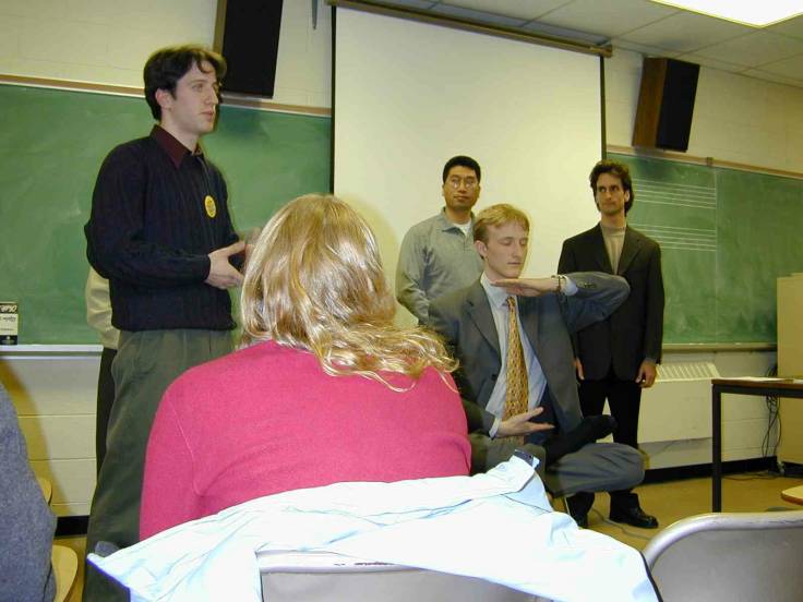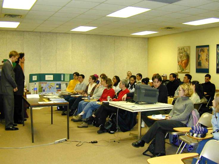 【明慧网2001年3月6日】由(University of Waterloo Engineering Department and WPIRG)加拿大滑铁卢大学工程系和WPIRG主办的第三届学生年度和平会议在滑铁卢大学的CONRAD GREBEL COLLEGE于2001年2月27和28号召开。与会的法轮功学员做了长达2个小时的演讲。学员们向与会者介绍了法轮大法及其自1992年向国际社会传播以来给人类带来的崭新的和平理念。学员们详细的介绍了法轮大法自1999年4月至今在中国遭到残酷迫害以及法轮大法的修炼者在被迫害失去工作,家庭,甚至生命的情况下仍坚定“真,善,忍”的崇高信仰。呼吁全世界认同法轮大法“真,善,忍”这一人类最高和平理念的社会团体,个人支持法轮大法,呼吁中国立即停止迫害镇压法轮大法,解除对法轮大法的错误禁令。揭露其违背中国宪法的信仰自由,言论自由。揭露其违反世界公认的多项的基本人权。对法轮大法的残酷镇压,就是对人类赖以和平生存基础的道德的摧残。揭露江泽民反人类的本质。