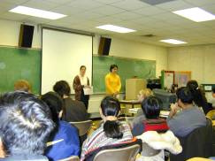 加拿大法轮功学员在第三届学生年度和平会议演讲图片报导