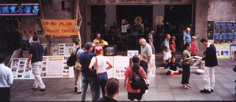 唐人街座落在与悉尼的旅游圣地 一一情人港襟衬相连的位置,由此每天有大量的世界各地旅游者到此观光。从征集签名册的记载来看,有20多个国家的旅游者接触了这一讲真相活动。因为活动中始终有学员作功法示范,祥和的场面、舒缓的动作、美妙音乐和清晰的解说,吸引了不少有缘人。由六岁的孩童到古稀长者组成的示范是最吸引人的,引来众多人照相、摄影观看。签名三十五天的展示中,有的人当场学功、有的打听炼功点,主动索取资料,有的听完、看完介绍後马上到附近书店去买《转法轮》。