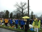 日本弟子雨中炼功壮观场面,牌子为日本(法语)公园炼功