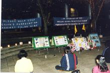 电视录像里不时传来国内学员在天安门广场高呼“法轮大法好”,这高呼震撼着我们,也震撼着过往的行人。作为身在国外的同修,我们深感讲清真象,暴露邪恶的重要。大法的威力,学员的承受会唤起人们的良知,使善良,有正义感的人们和法轮功学员一起抵制,铲除邪恶,促使江泽民政府停止迫害法轮功学员。
