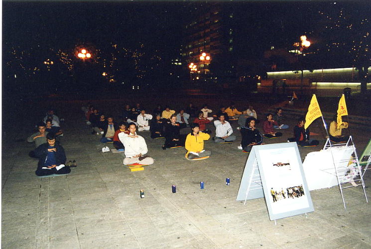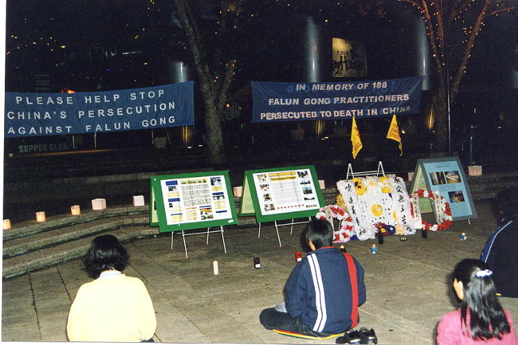 【明慧网2001年4月20日】 2001年4月17日晚7:00至10:00,奥克兰市50多名法轮功学员在市中心AOTEA广场举行了烛光守夜活动,以悼念被迫害致死的180余名法轮功学员。烛光悼念期间,学员们向过往行人发放了法轮功真象材料,播放法轮功学员人权遭受严重侵犯的录像带,许多行人驻足观看录像,图片及学员的五套功法演示。有些行人认真听取了学员的介绍,详细讯问了发生在中国的这一切;有的西人直接加入了我们的炼功队伍,开始学习五套功法。