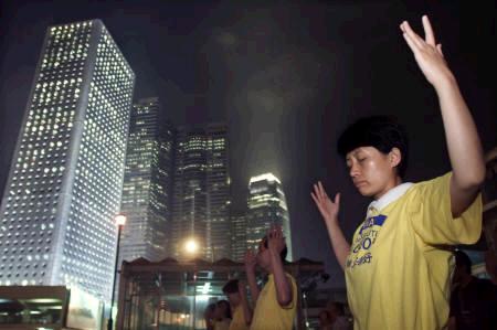 香港法轮功女发言人惠一涵(Hui Yee-han)告诉路透社说他们将于5月8日到5月10日在2001年全球财富论坛期间进行集体炼功,举办户外照片展览以及散发法轮功传单。江预计将参加该论坛。